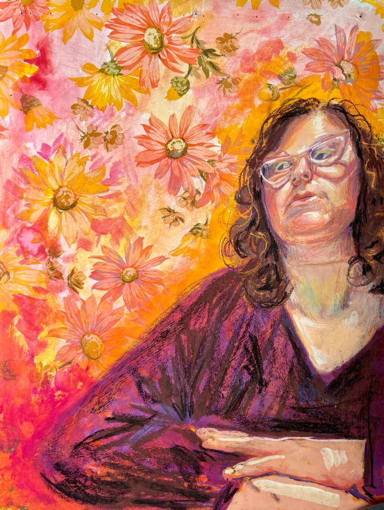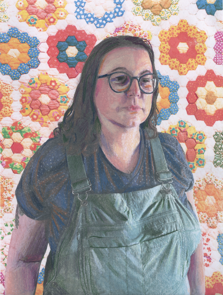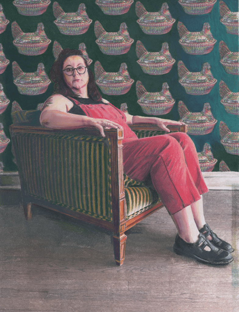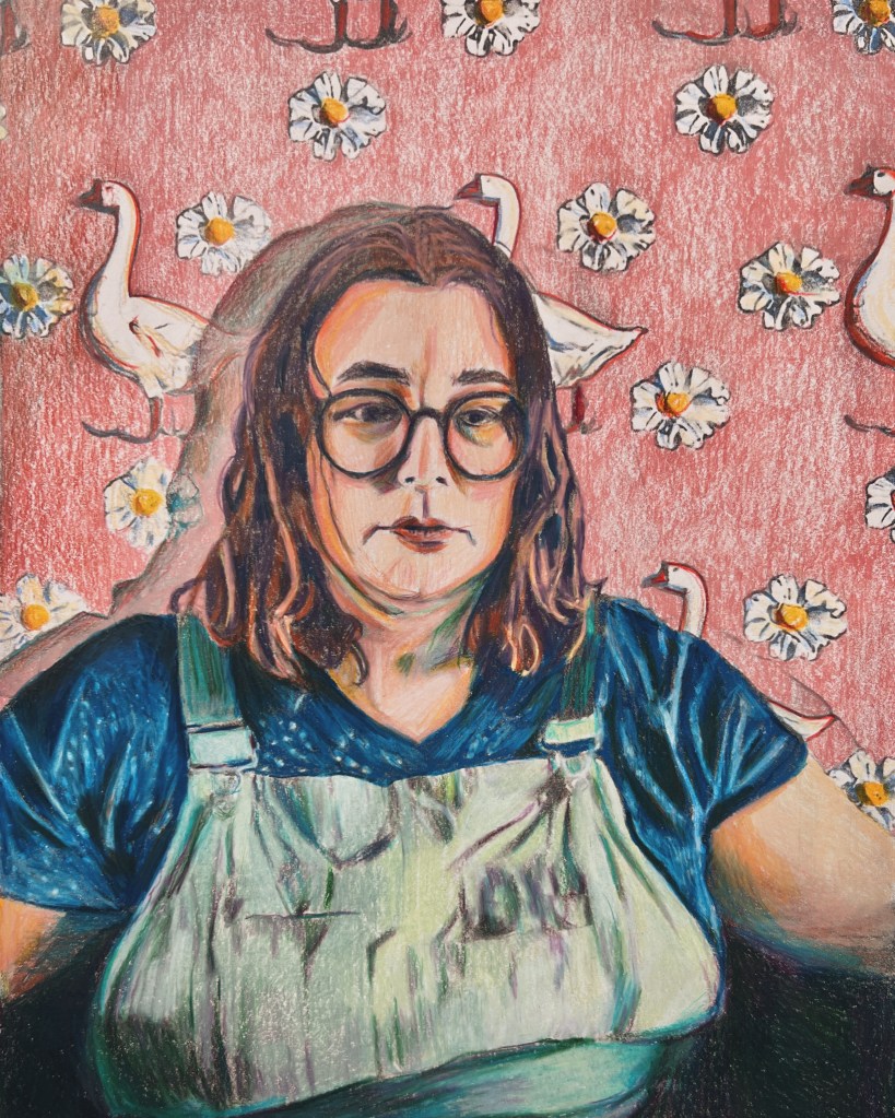 Self Portrait with Ham, 2024 photo transfer and colored pencil 14 x 10.5 inchesSelf Portrait with Quilt, 2024 photo transfer and colored pencil 14 x 10.5 inchesSelf-Portrait with Kittens & Sunflower, 2024 photo transfer and colored pencil 14 x 10.5 inchesSelf Portrait with Nesting Hens I, 2024 photo transfer and colored pencil 14 x 10.5 inchesSelf Portrait with Geese II, 2024 photo transfer and colored pencil 14 x 10.5 inchesSelf-Portrait with Nesting Hens II, 2024 silk screen print 14 x 10.5 inchesSelf Portrait with Geese I, 2024 photo transfer and colored pencil 14 x 10.5 inchesSelf-Portrait on Wallpaper II 2024 gouache & pastel on wallpaperSelf-Portrait on Wallpaper I, 2024 gouache on wallpaperSelf-Portrait on Wallpaper III, 2024 gouache on wallpaper